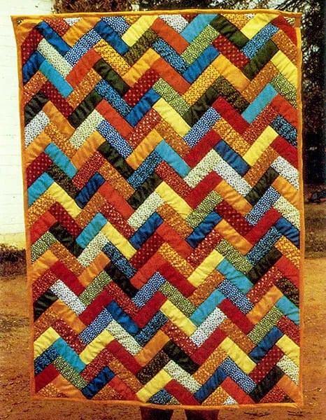 The Beeโs quilts, like the bold strip-pattern example above, were stitched from scraps of cloth โ even faded jeans too worn for the cotton fields.
